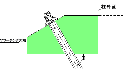 頭部定着構造は柱基部とフーチング上面で構成される隅部に三角形状のコンクリートを打設。これを定着座面とし、既設フーチングと一体化し定着します。 |